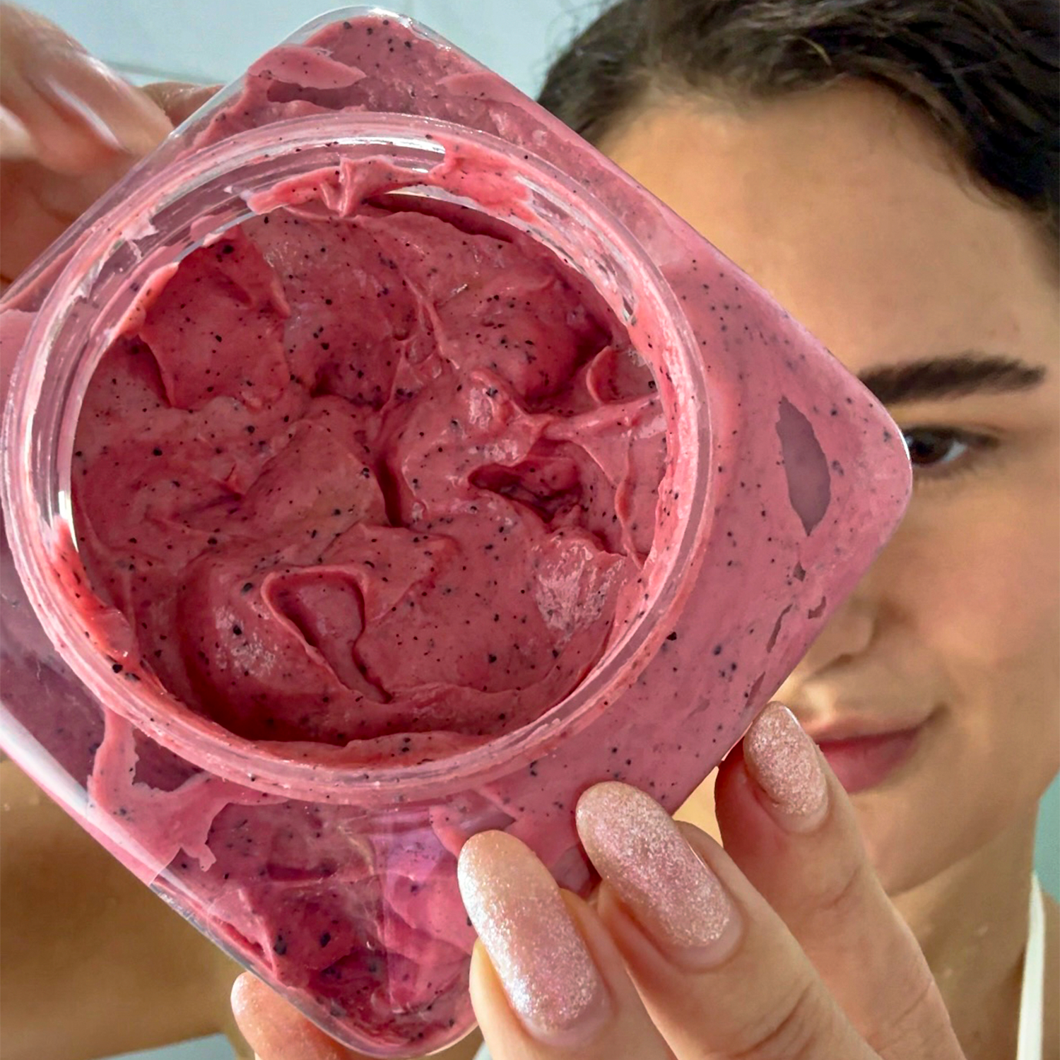 Sem açúcar na fórmula, ultraconcentrado e com notas afrodisíacas que despertam os sentidos. Granulado delicado promove renovação celular, elimina toxinas e células mortas, revelando pele macia e aveludada.