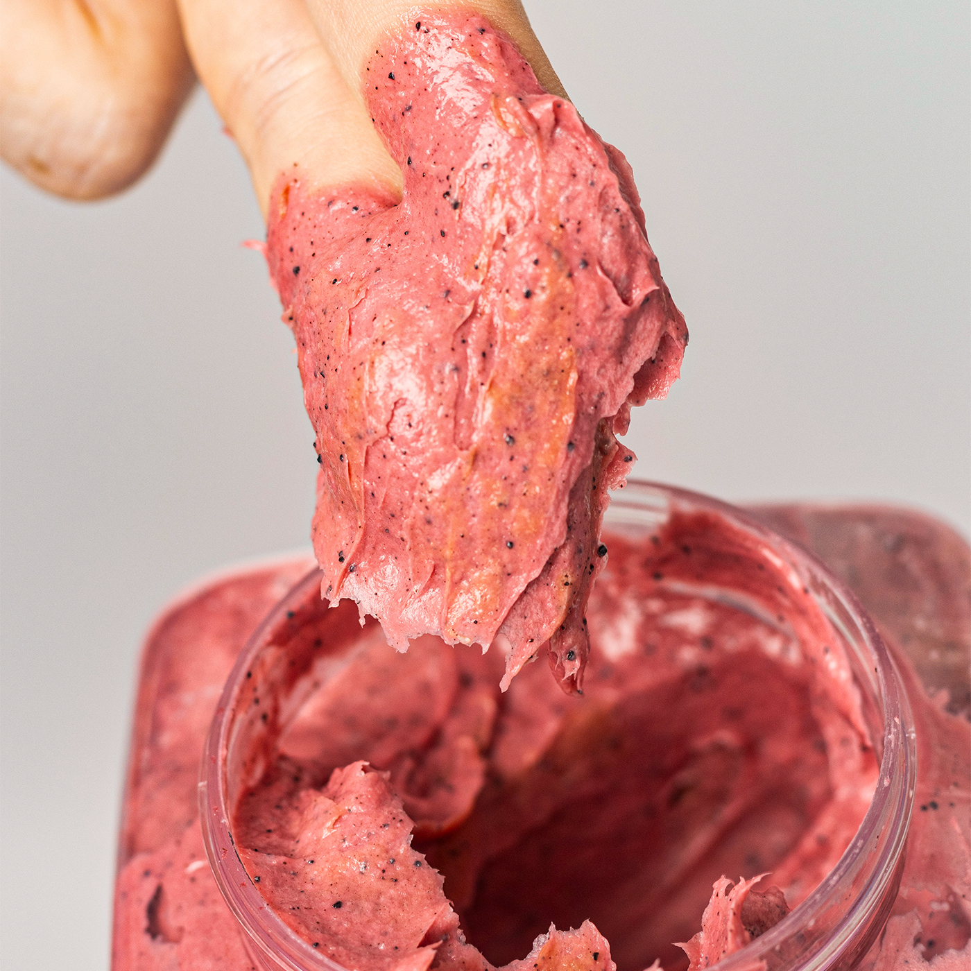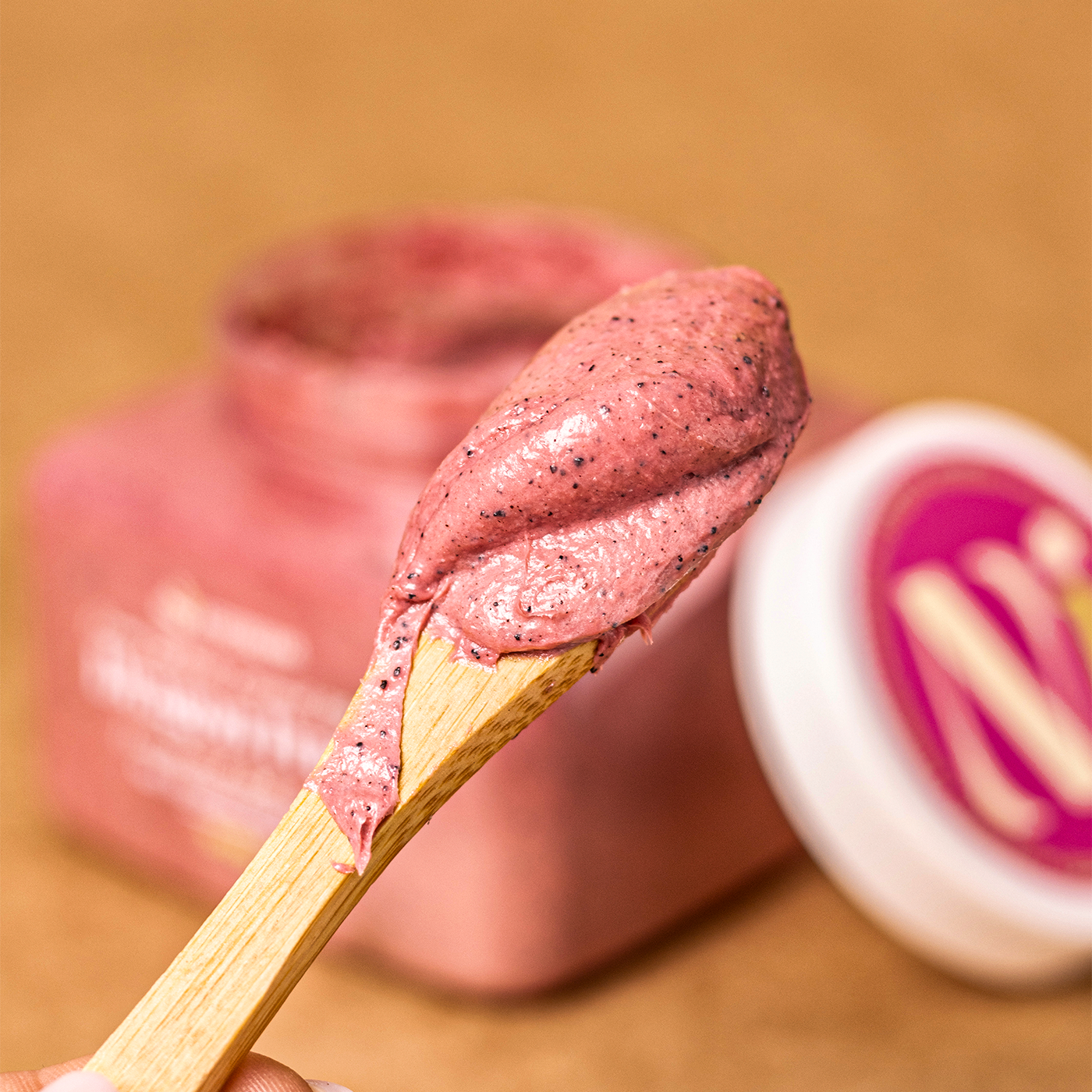 Rosa vibrante, perfume afrodisíaco e textura densa que desliza na pele. Esfolia, hidrata e deixa um aroma marcante e sensual que gruda na memória — e no corpo.